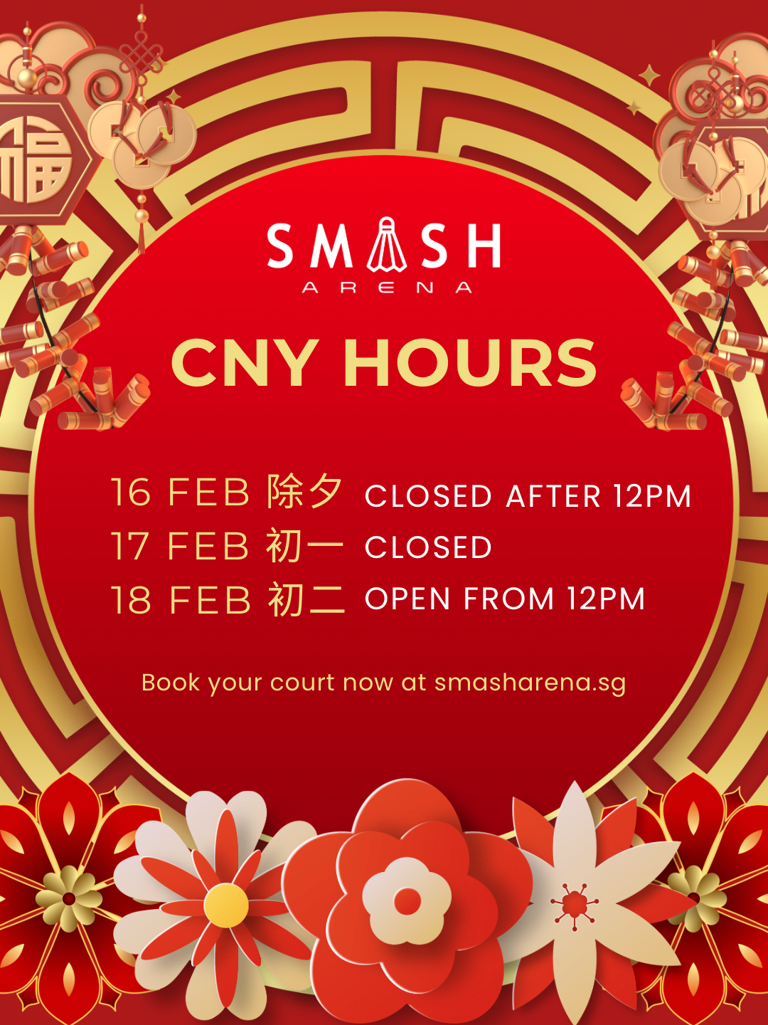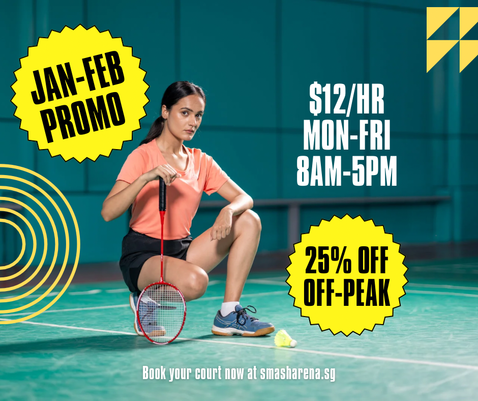 • Shoe Requirement: For your safety, only badminton non-marking shoes are allowed inside the hall. Staff will check upon entry. Improper shoes and/or court stained with marks will result in a $100 fine. We recommend arriving 15 minutes earlier for mandatory shoe check. (Smash Arena and/or the Staff reserves the right to refuse entry if shoes are deemed to be marking shoes at its sole discretion. The decision shall be final and any contest will not be entertained.)